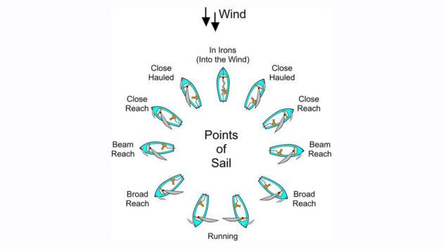 A boat will sail ‘close hauled’ and then tack by steering the boat through the wind before sailing ‘close hauled’ in the other direction.