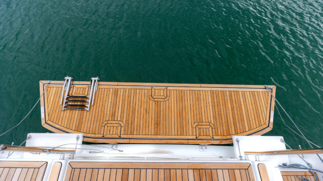 Beamy aft sections equate to significant space, particularly with the wide swim platform down. Photo: Jean-Marie Liot
