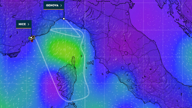 - Light winds off the Western side of Corsica