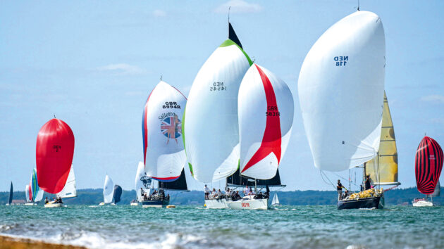 A classic run down the Green for Cowes Week competitors this year required confidence in their yacht’s depth calibration. Photo: Paul Wyeth/CWL
