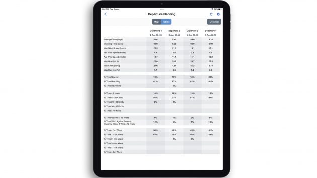 PredictWind’s Departure Planning tool provides multiple departure times for analysis. It’s important for each skipper to analyse the data to find the best conditions for your passage.