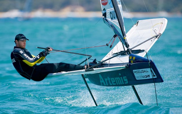 Nathan Outteridge competing in the foiling Moth. Photo: Thierry Martinez