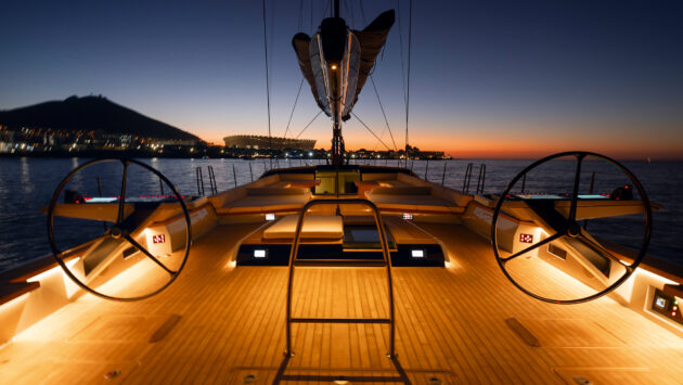 The photos paint the scene well, but try also to picture being aboard. The feeling of helming this near 80-tonne beauty as it smoked along, planing offwind under the auspicious watch of Table Mountain, is formidable, and one I shan’t forget.